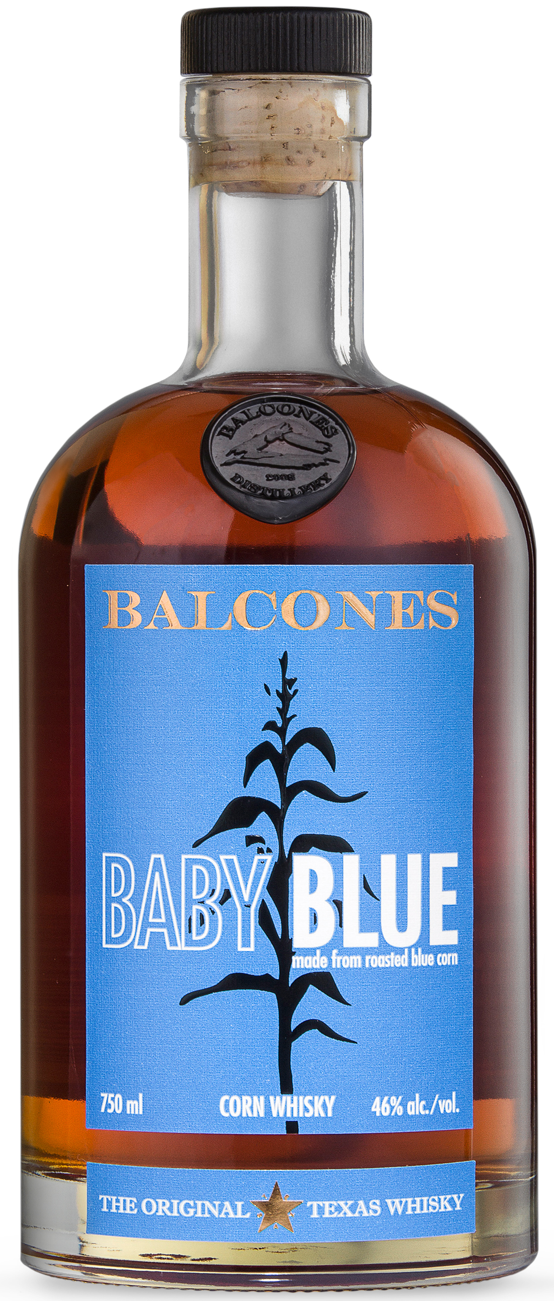 Balcones Baby Blue Corn Whisky Blue corn Whisky Baby blue. Made from blue corn and aged in oak barrels for six months or longer and non-chill filtered. Balcones Baby Blue Corn Whisky.